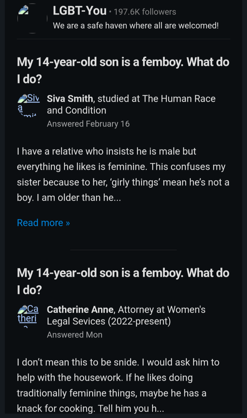 “If he likes doing traditionally feminine things, maybe he has a knack for cooking.”