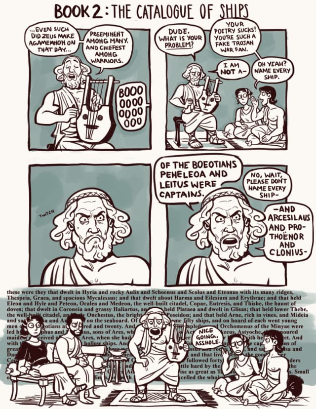 you could read the catalogue of ships in the Iliad? but I wouldnât describe the text as a whole as boring