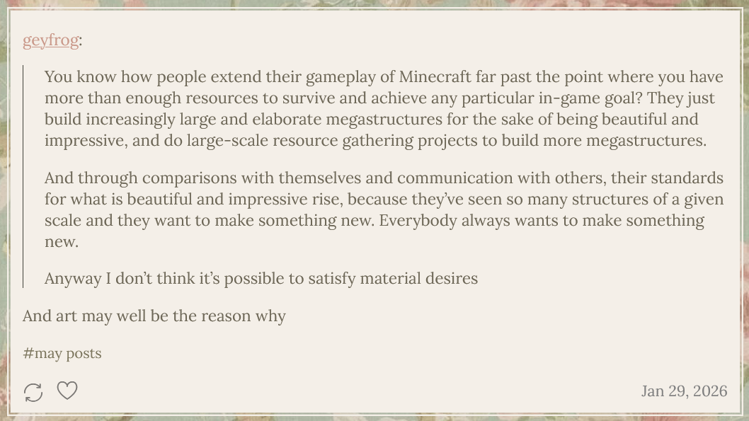 Though when put that way, that kind of thing comes at the expense of “attempting to get to the kitchen for breakfast without having to optimize your path there”.