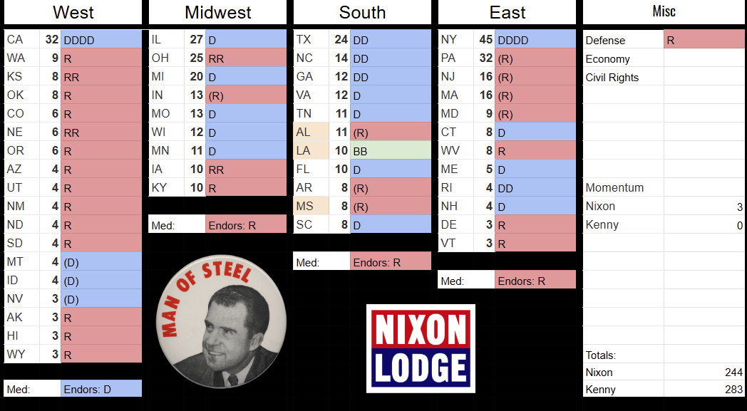 Nixon wins the first issue, gaining a momentum and an endorsement!