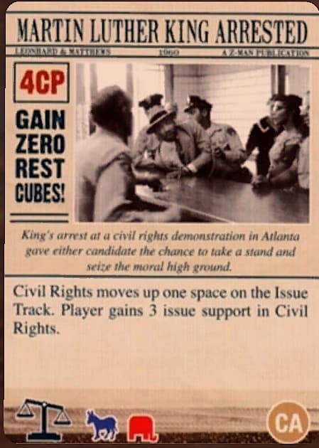 … for its campaign points value plus one, due to the Bobby Kennedy Buff, placing one support cube on each issue.