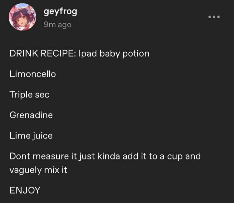 I need you to understand that this ISNāT drinkable by a normal person no matter the lime juice content youāre unironically not making it worse