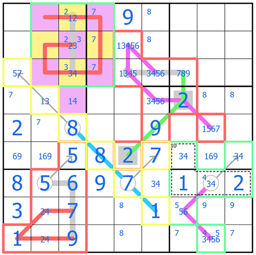 I couldn’t figure out why the B1C3 thermo had to be [123], so I got a [234]-deadlock after ~25 minutes. After backtracking, I solved the puzzle in 31:38 total.