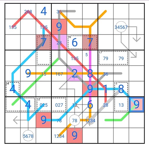 With ambiguous arrows, the solve is quite impossible… (I forgot to disable one of the layers, when I checked the possibilty of the solve.) Even though the puzzle had an unique solution, without knowing which were the correct arrows, you couldn’t solve the puzzle…