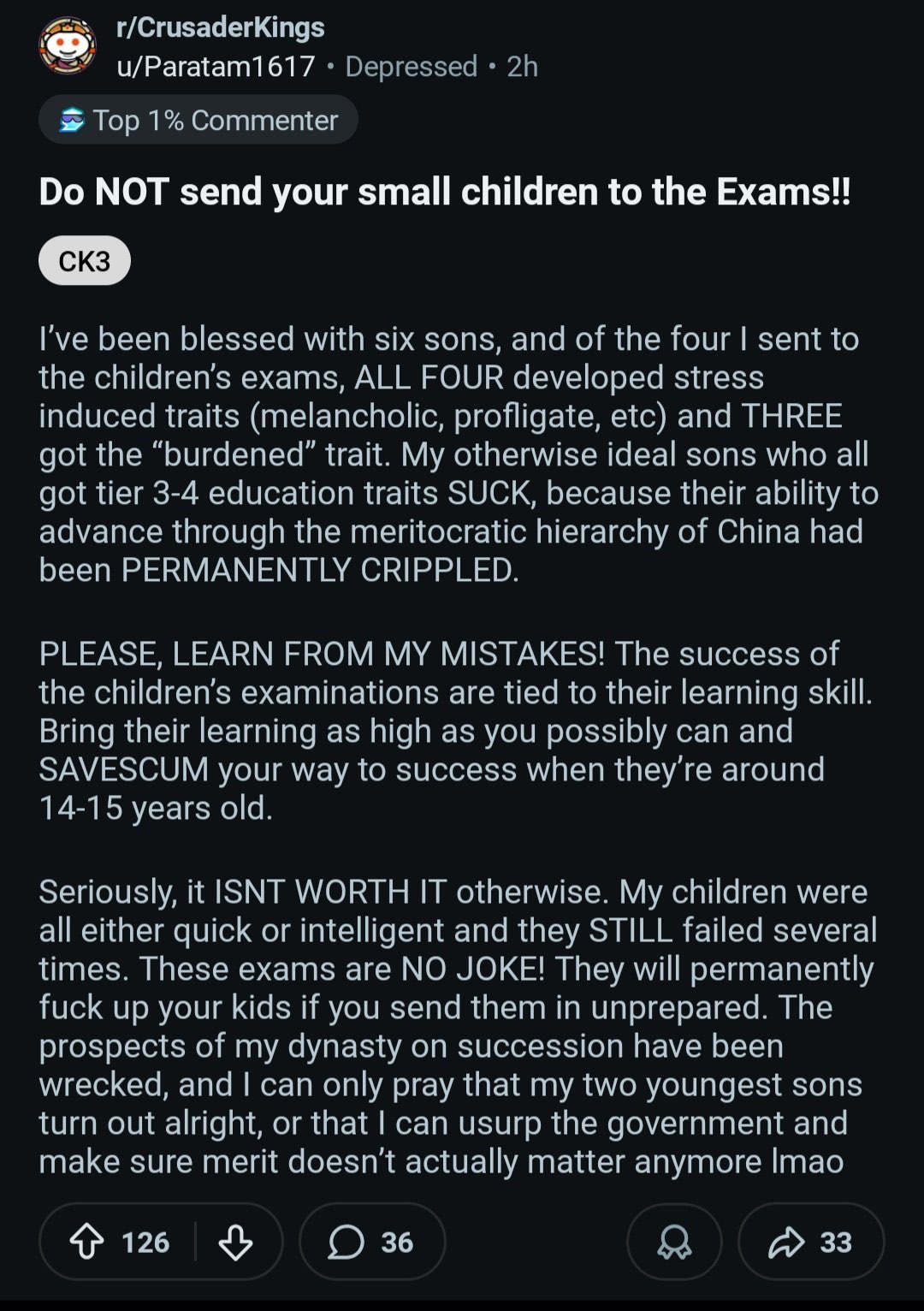 if they dont pass the exams at age 5 they are not worthy of the family name