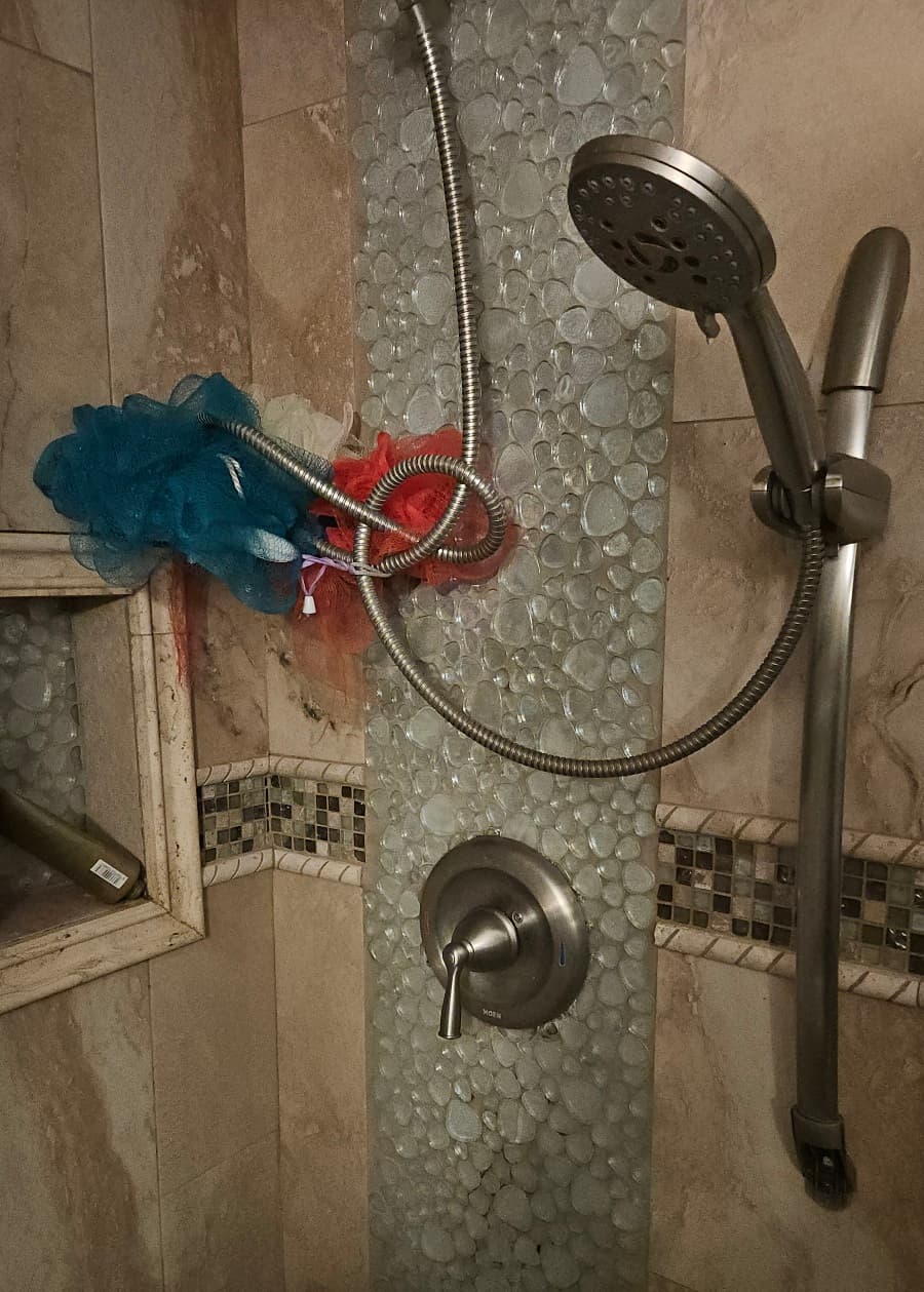 Like he is rambling about random names and such, is like…making people up???, is actively rummaging through the living room while making said rambling, and also seemingly turned the shower head into a fucking pretzel.