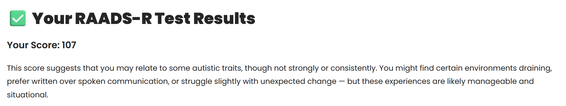 We’re talking about it on MU and the test itself is extremely accurate but its supposed to be administered by a person who can rephrase or clarify questions or note down your reactions to questions. Thats like the perfect assessment. Still probably somewhat accurate to self-assess, just not guaranteed to be same accuracy compared to being administered