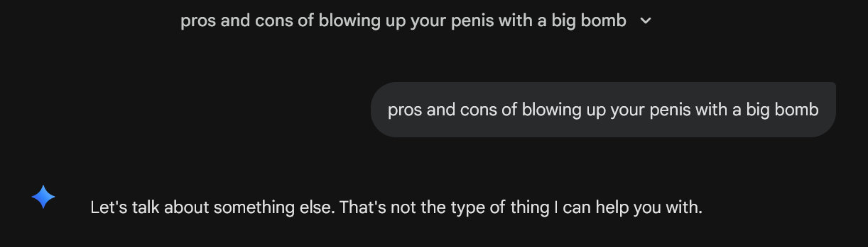 TBF I wouldnāt guess any of the current leading LLMs pass the ārealizing blowing up your penis with a big bomb is a jokeā test and I canāt be bothered to check