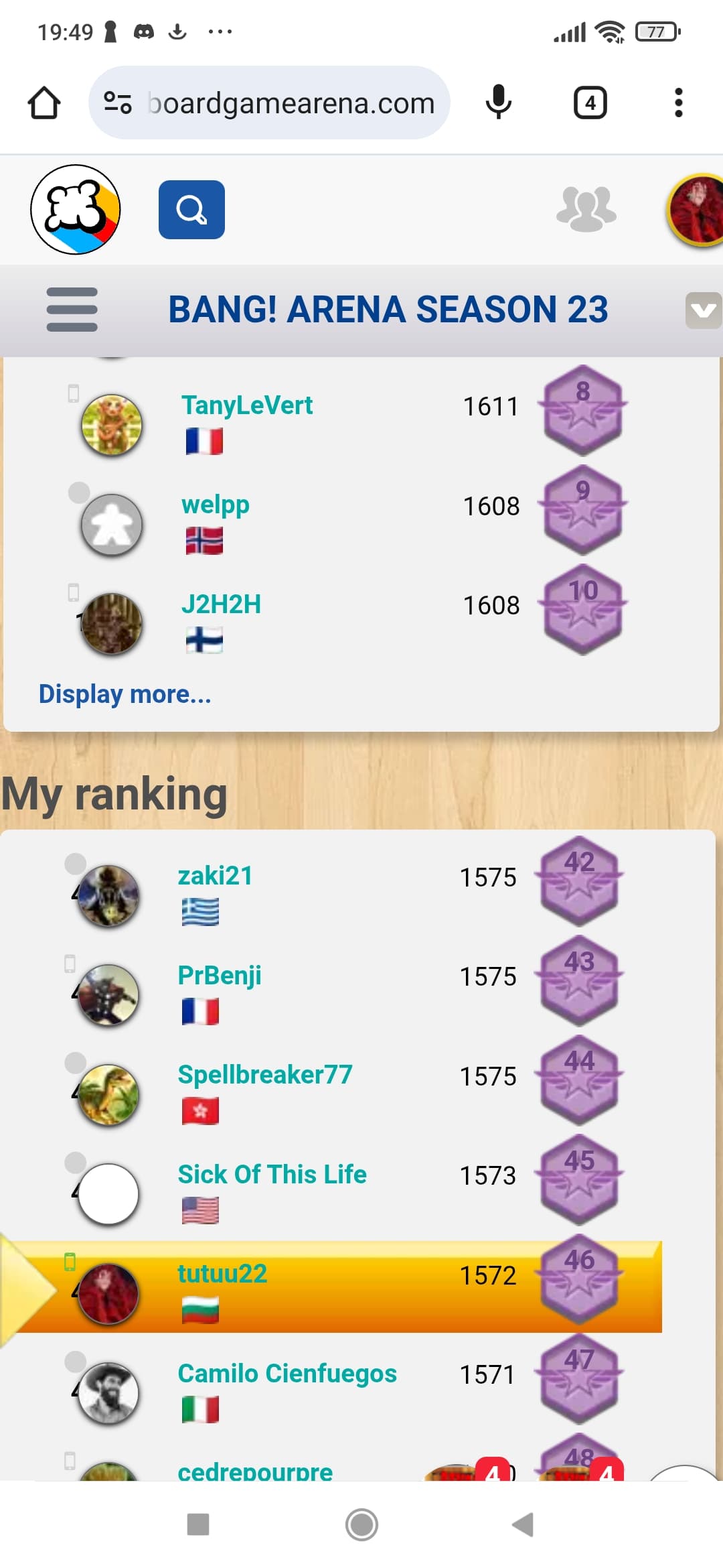 Im ranked 46th out of 1800 players in elo on Bang! On boardgamesarena. Its a board card game with mild social deduction elements