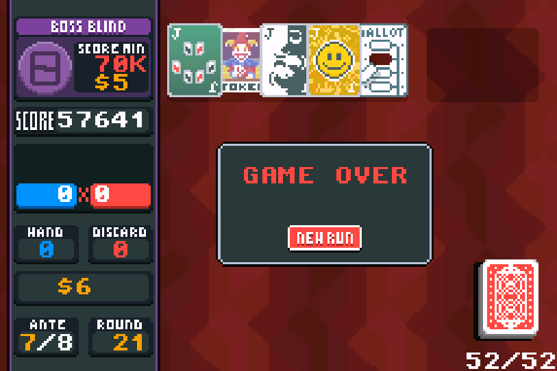though, Iâm pretty sure this canât actually clear ante 8 since hand levels and card enhancements donât exist and I canât move my jokers around to put the face behind the photograph