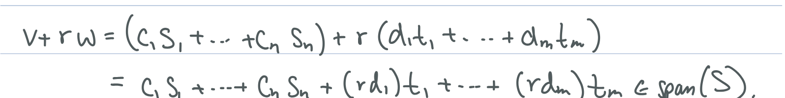 So instead of saying a linear combination is of the form \sum a_i v_i across all v_i \in V, he framed it as "take any amount of vectors from your set and then make a linear combination which leads to things like this