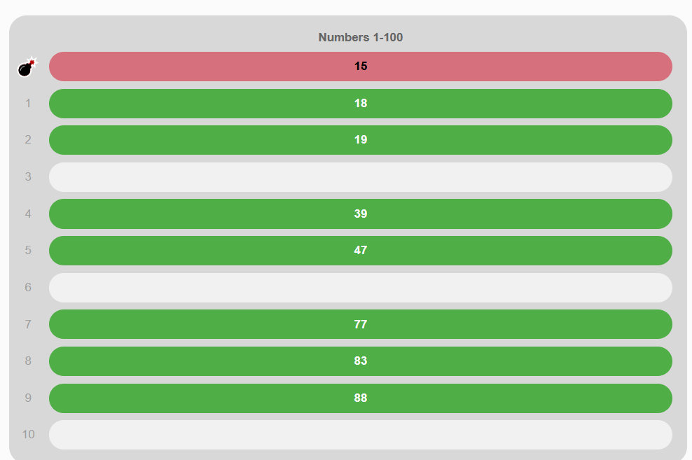 nothing like building a beautiful 8/10 with gaps between 7-34 and 66-85 only to lose because you placed a 99 in the bottom spot on your first turn and then rolled a 100
