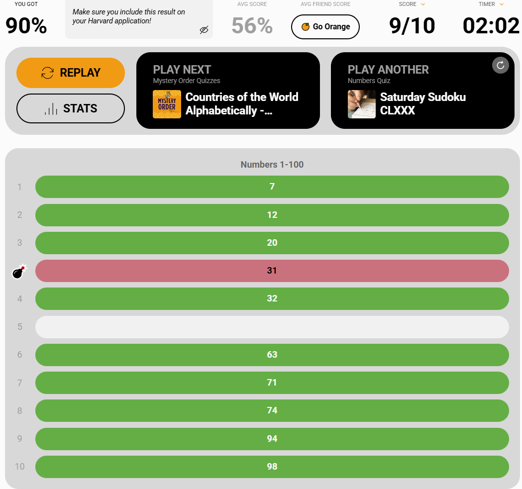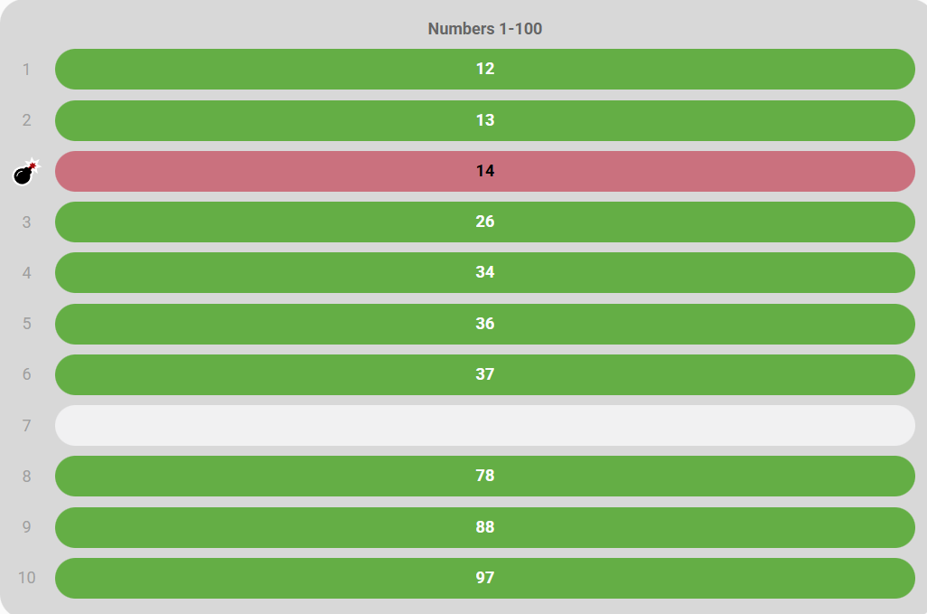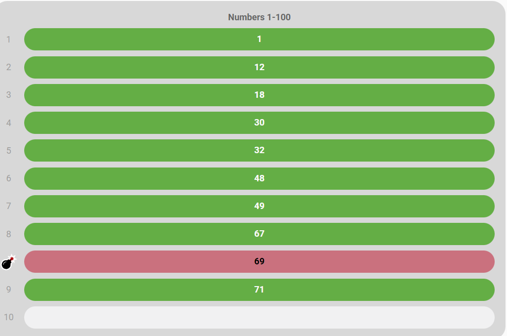 (it generates a number from 1-100 and you have to put it from 1-10 and cant move it from there. the numbers have to be in order. the last one is always pure rng but i left open about a 1/3 chance, only to miss it by literally 1)