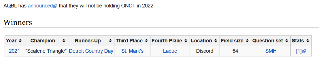 i guess the 2021 ONCT has its own separate page from ONCT, despite the 2021 ONCT being the only one ever run
