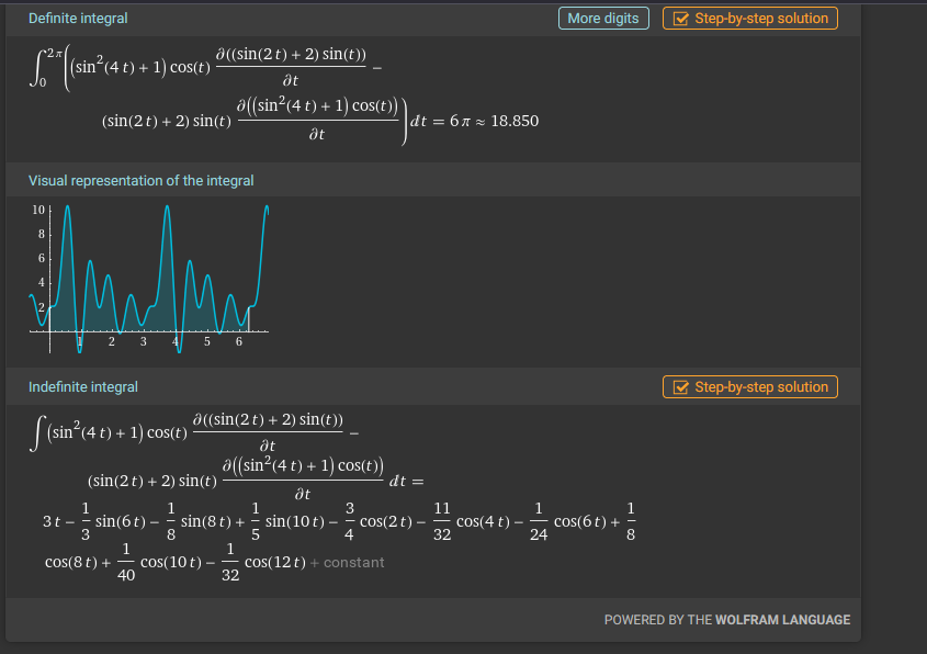 Integrate[-((2+sin(2t)))D[(sin(4t)^2+1)sint,t]+ ((sin(4t)^2+1))D[(2+(sin(2t)))sint,t]]