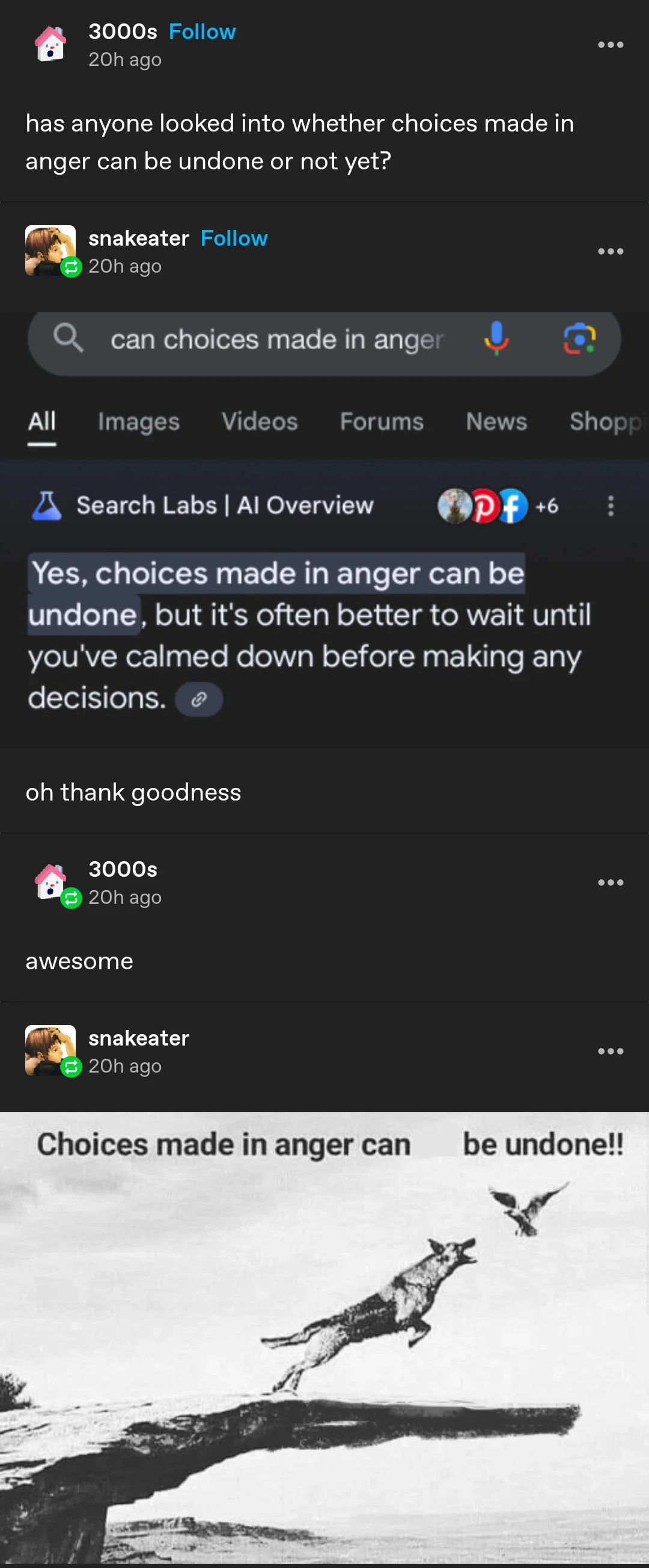 I hammered a villager on impulse in a mafia game once and was like genuinely world-shatteringly upset about it cause it felt like I’d lost control of, like, my mind and my actions, and I was really worried itw as gonna start happening with other stuff. But actually having that low-stakes Bad Decision that I’d just done in my mind helped me not make stupid decisions later.