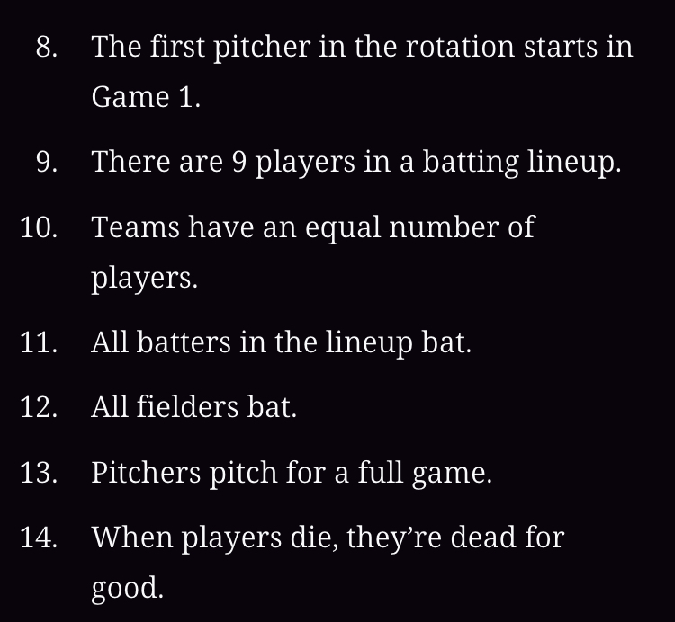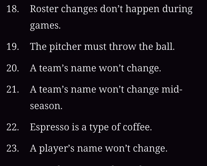 We hd one of those Falsehoods pages for Blaseball and it was very long