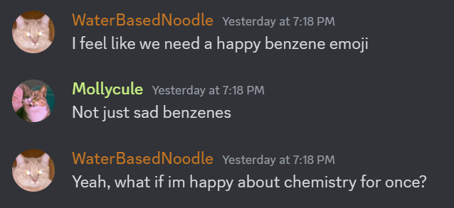 i donāt think iāve ever heard a chemistry question and been happy about it