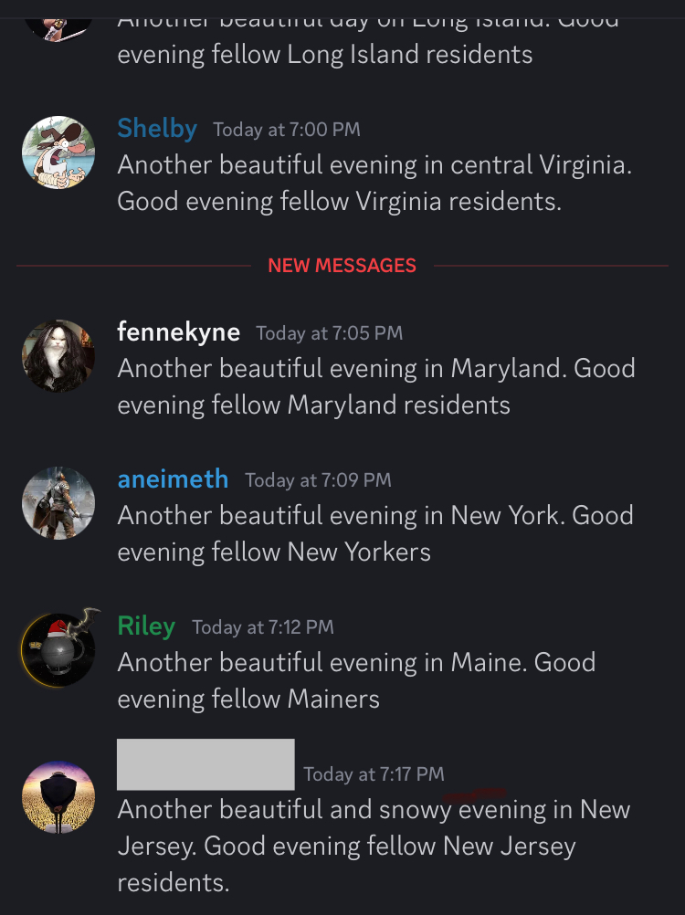 The last guy is in ~every dorm building Disocrd server. Some of them make you verify your room number to join; he just makes up one and itâsalways worked. One asked if there were ant server suggestions and he said âwe shouldnât let people who donât live here in the serverâ (many people agreed)