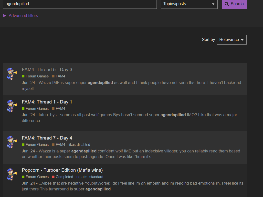 - My mentions in FAM4 are calling people/things “not agendapilled” while the wolf mention calls a specific post “agendapilled”