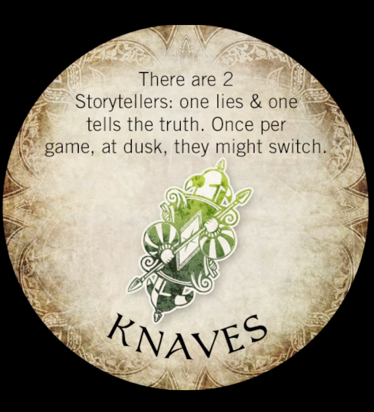 God of Ug (Loric) - One Ug hat. When wear Ug hat, must speak one sound at a time but vote twice. If fail, pass Ug hat.