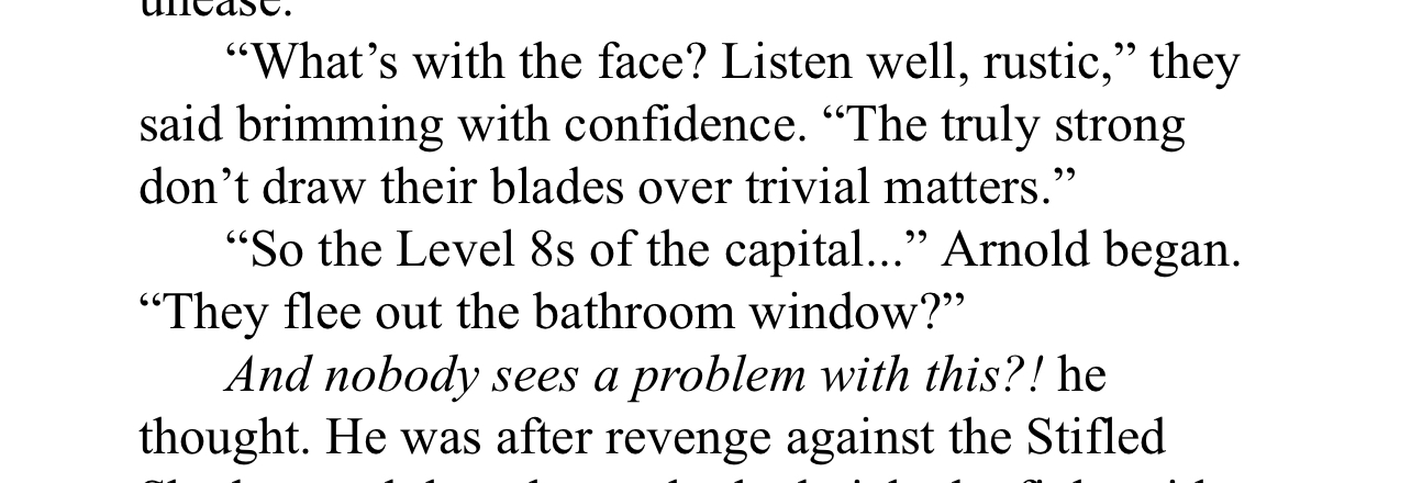 The main protagnist of the story was faced against a level seven and said he needed to go to the bathroom first