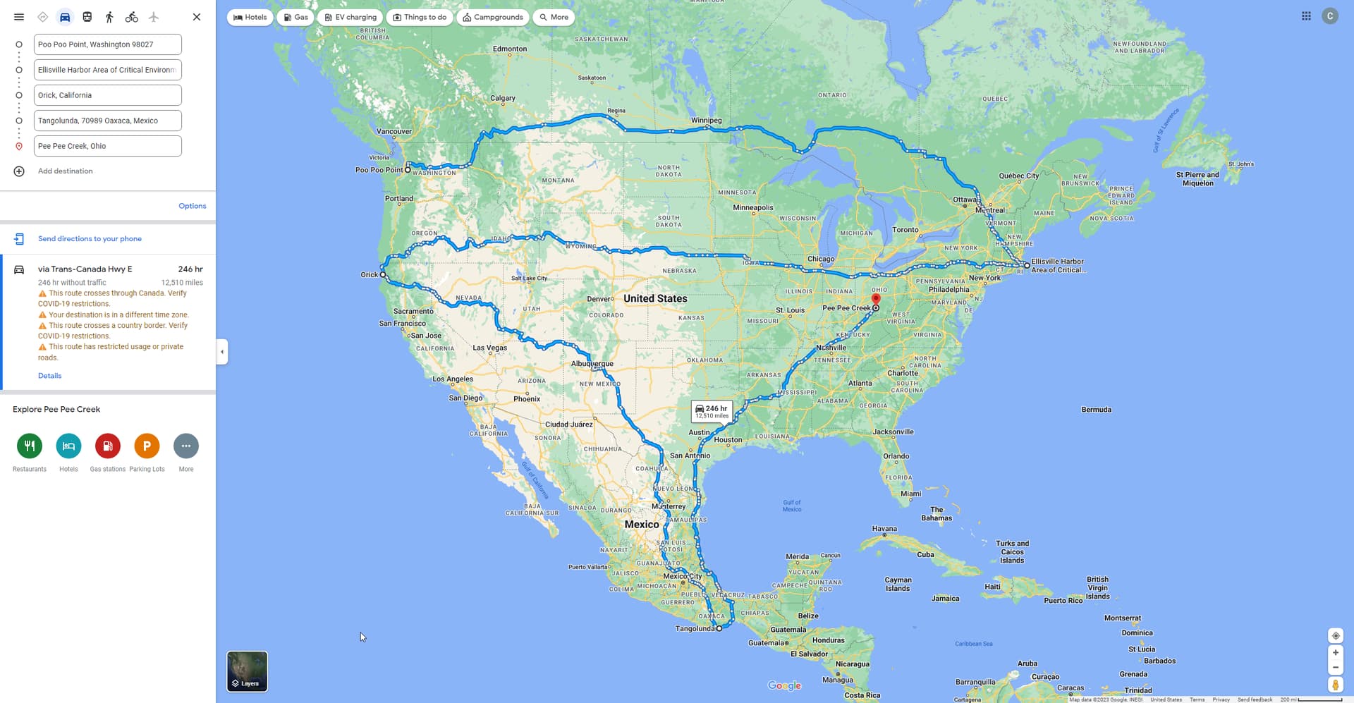 I played a mafia game once where it was a mech relevant task to make the longest roadtrip between Poo Poo Point and Pee Pee Creek using only two intermediate stops