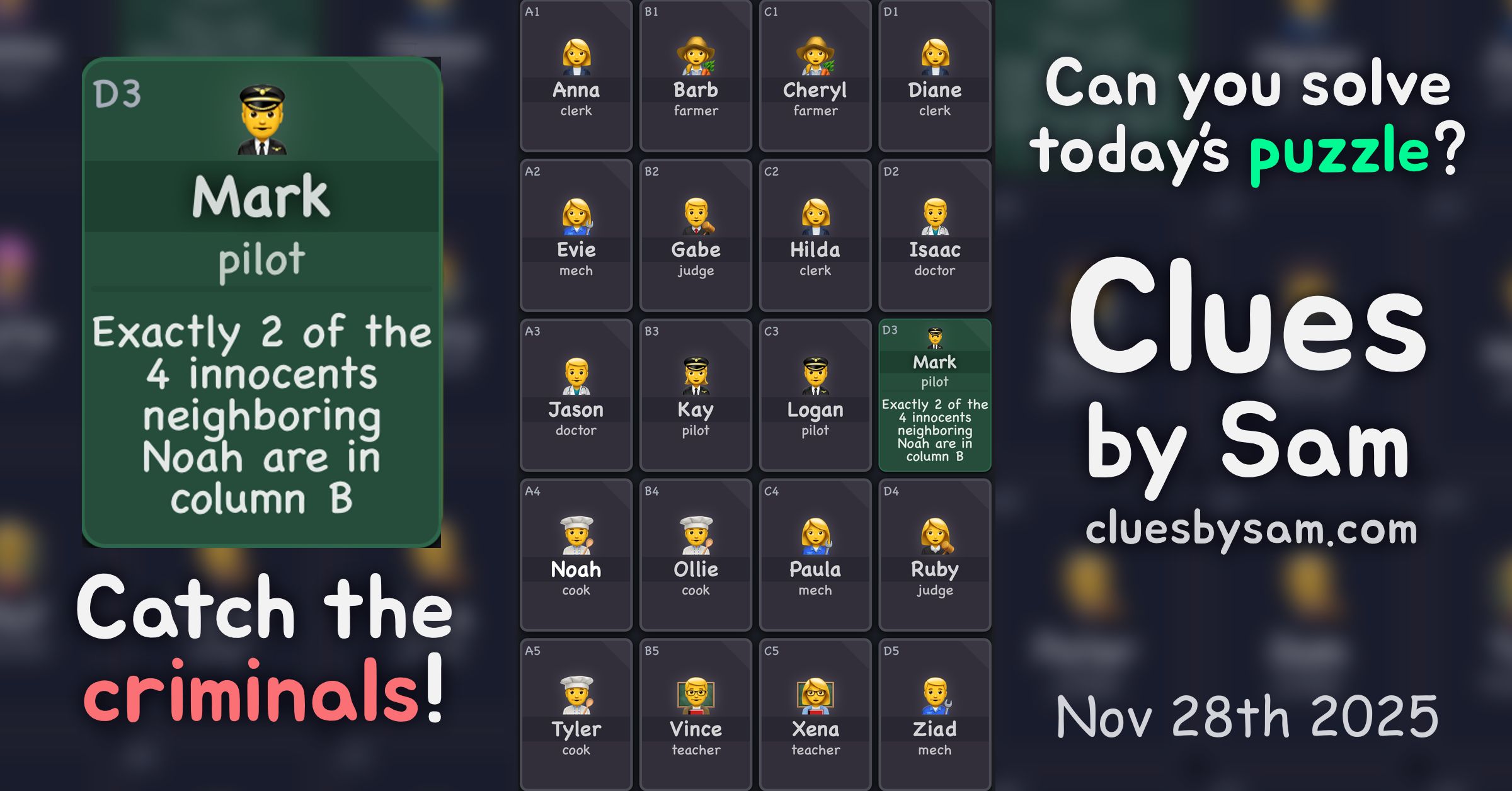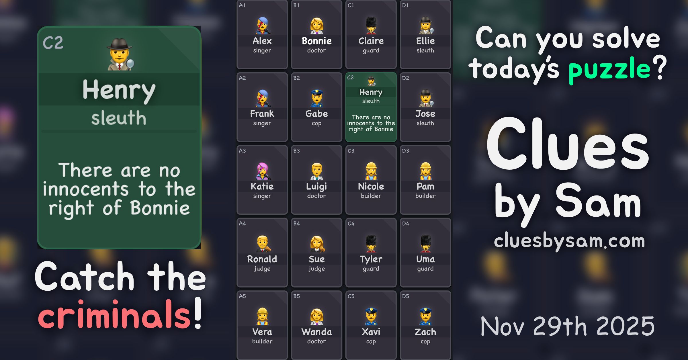 I solved the daily Clues by Sam, Nov 29th 2025 (Hard), in less than 12 minutes