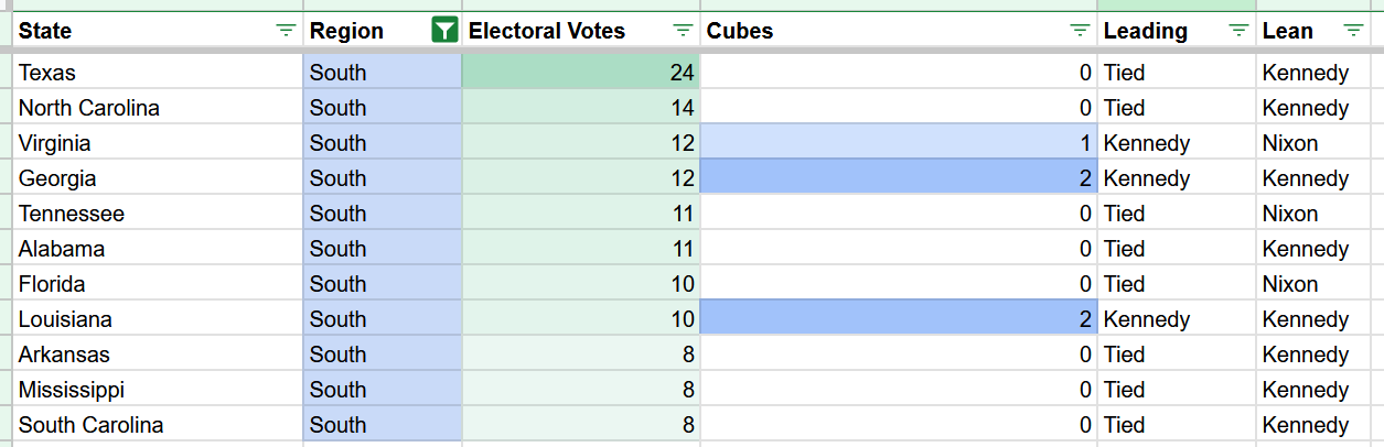 1 Florida 1 Virginia 1 Tennessee 1 North Carolina 1 Alabama sound good?