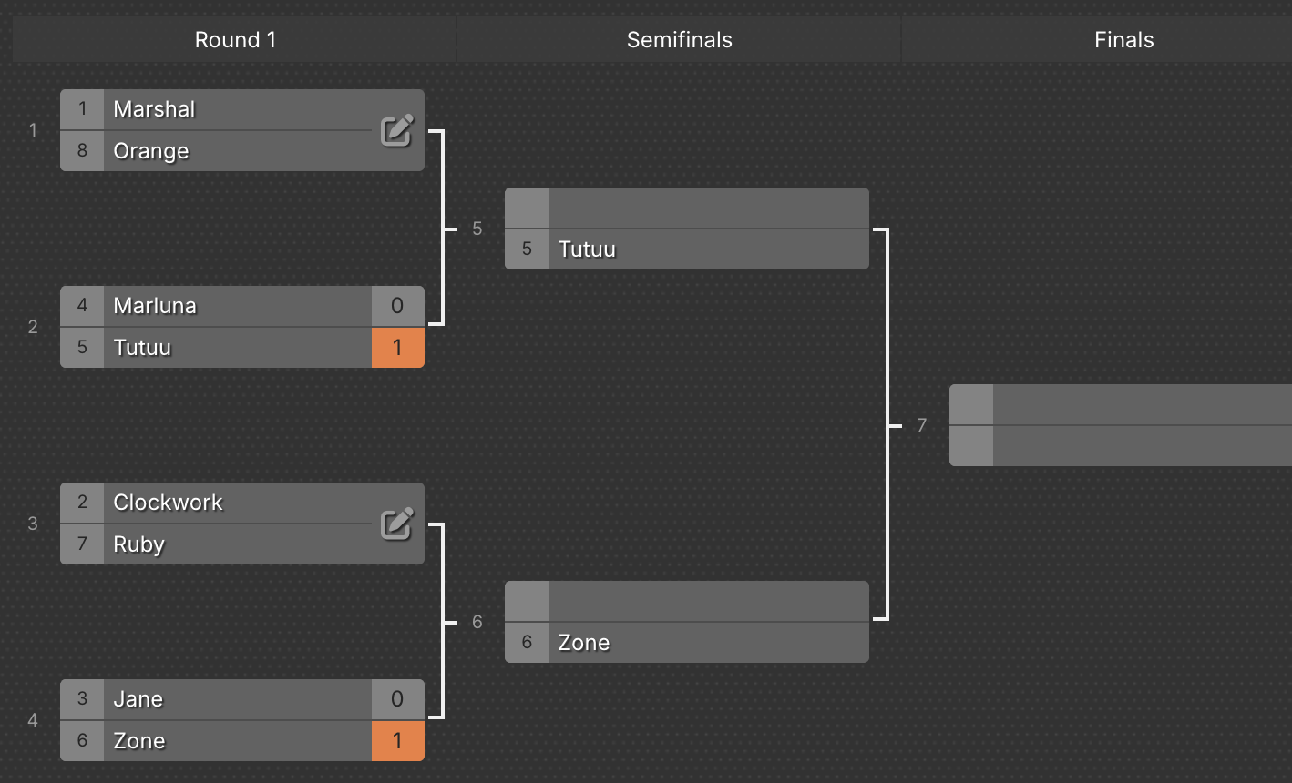 Neat! …now make a Losers Bracket and have the winner from that Bracket fight the winner from the Winners Bracket.