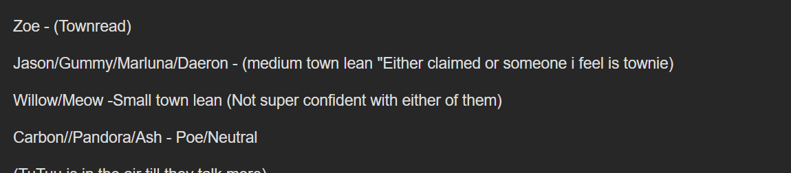 I had daeron, meow, marluna, jason as lock town d1. So easily could be 1-2 mafia there and them not killing me n1 makes sense