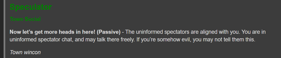 I sussed her and i wasnt rly convinced by the reasons to tr her and i also dont think my ability does anything so i spent no more than 10 seconds deciding who to visit