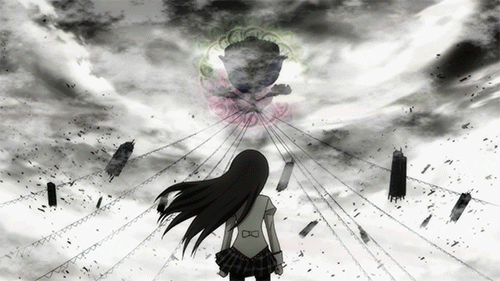 But at the end of it all… the labyrinth closes up, and the city remains. On an empty, quiet street, the survivors gather up the shattered remains of Mami Tomoe and Sayaka Miki’s Soul Gems, which sit next to a single Grief Seed larger than any ever seen before, potent enough to clean a lifetime’s worth of Grief.