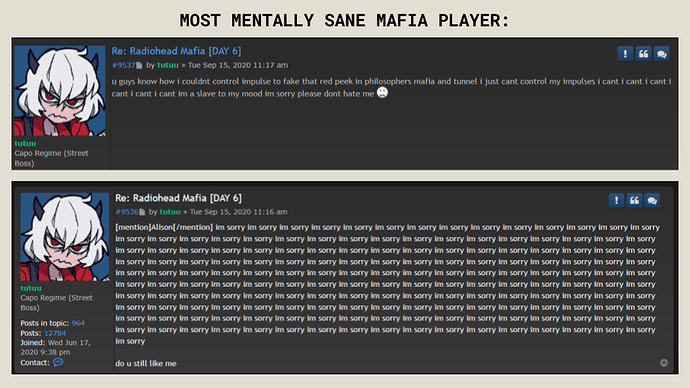 A tip for people. So, the goal to win the hearts of qualifers the people in it is to be the best. That’s not possible when wolves steam roll you as town and kill yoy n1. The way to advance past jury is to not lead town off a cliff and seem like the most reasonable villager in the town, which isn’t really hard