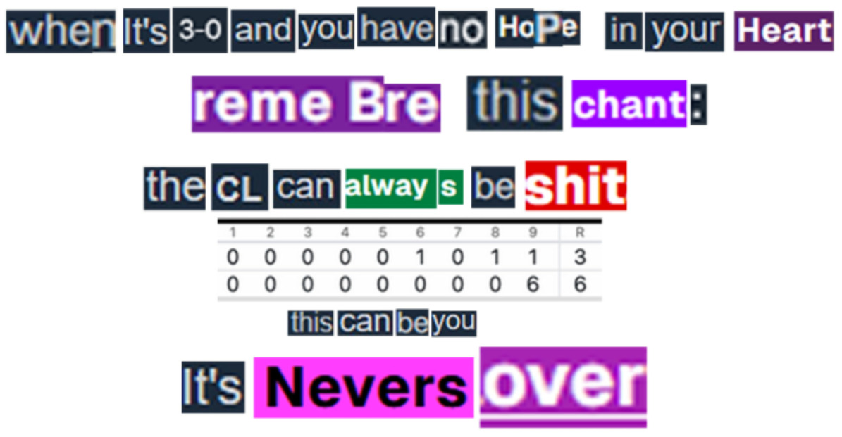 The image is constructed from screetshots of the baseball sim website ransom-letter style