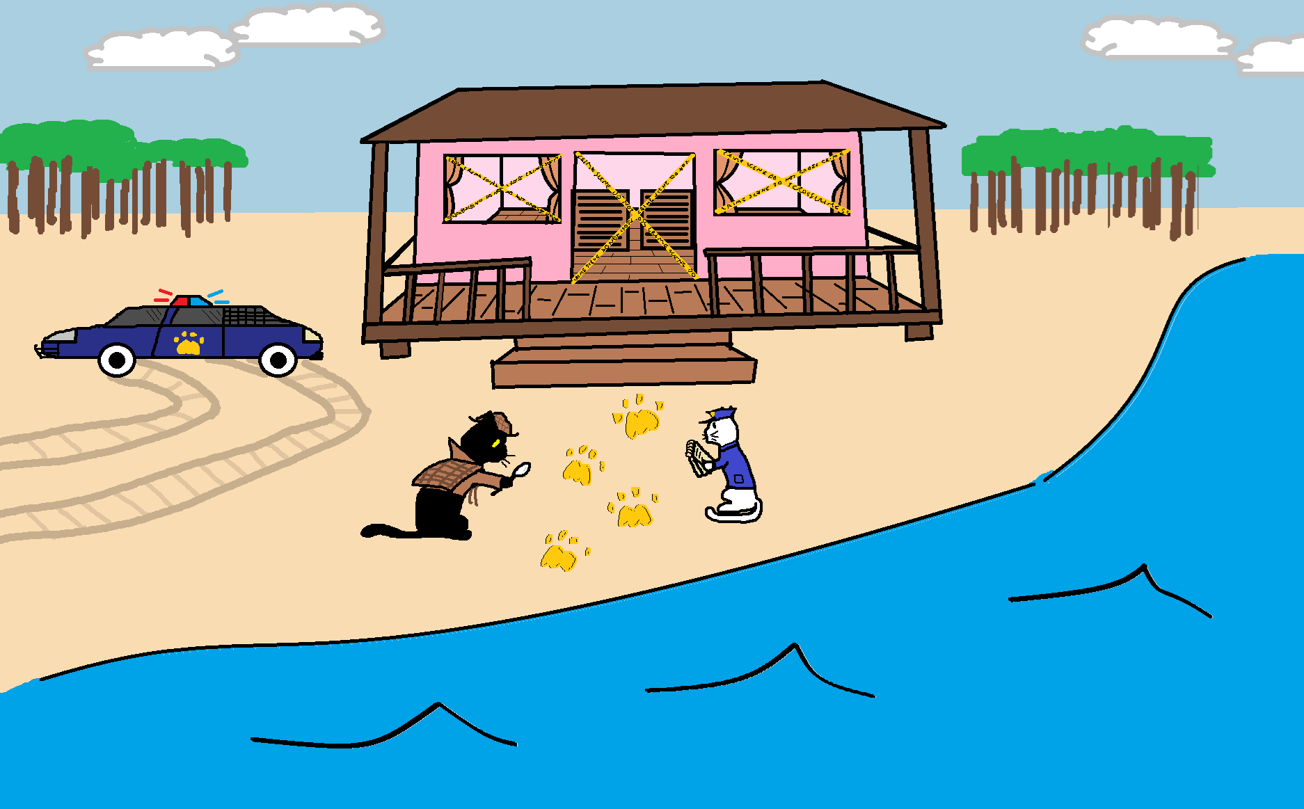 For the record, the criminal definitely escaped either by walking backwards into the ocean and then swimming away, or by wearing cat paws on their feet backwards and walking into the ocean before taking them off and making their escape.