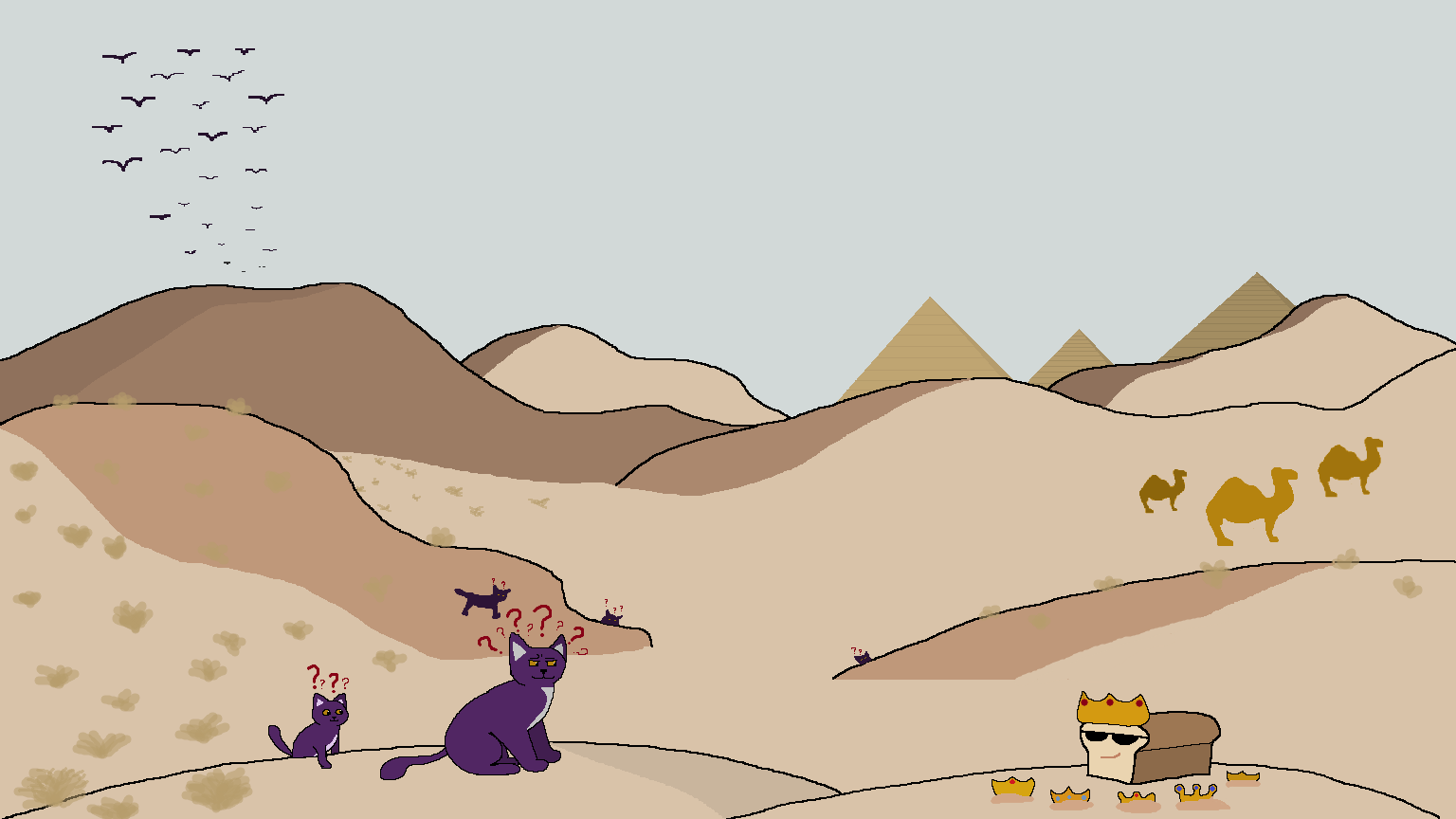 The pyramids and the birds in the background are really nice touches.