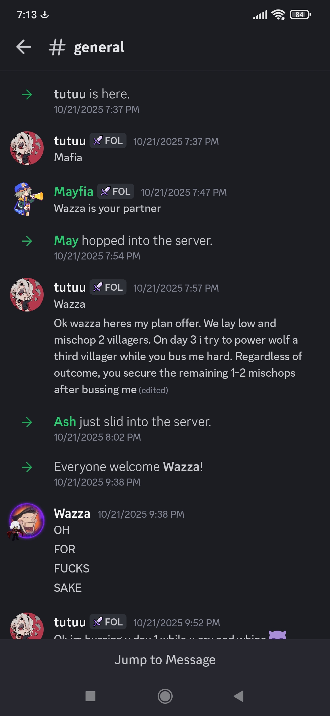 @tutuu is goated, mafia champ for a reason, practically allowed me to slither into townreads without actually having to pressure anything, brother has an annoying ass voice and uses it for the right reasons