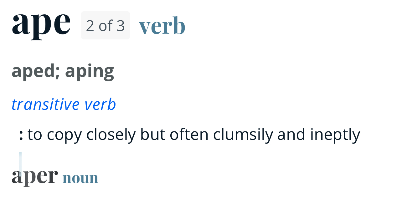 to āapeā something is to copy it because monkey see monkey do
