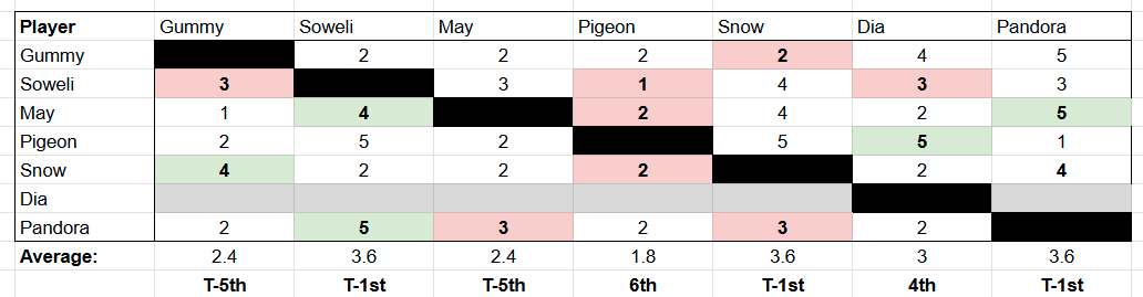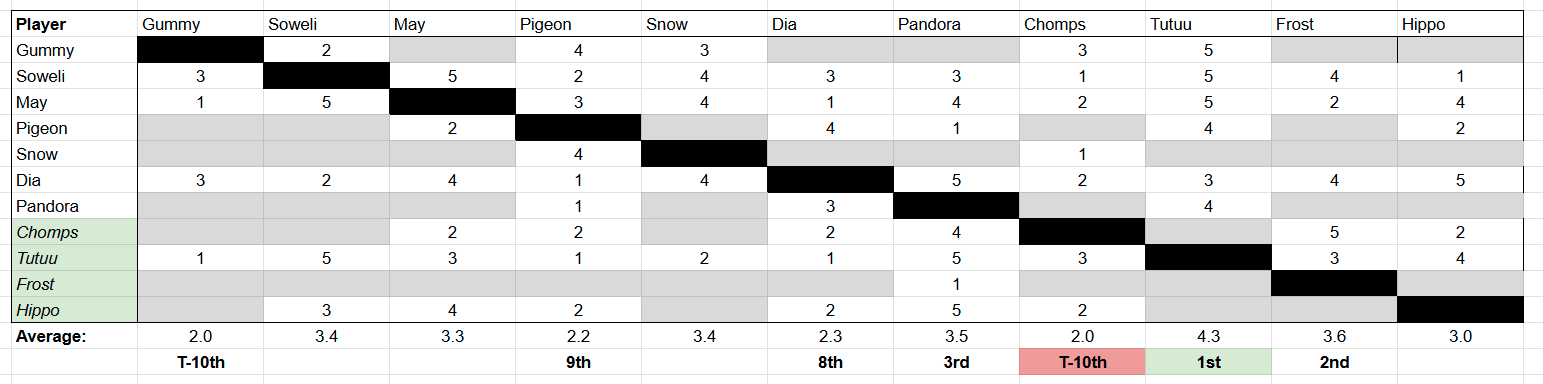 Reads spreadsheet for the game so far, opinions to follow but I want to present the raw data without my takes to avoid priming people.