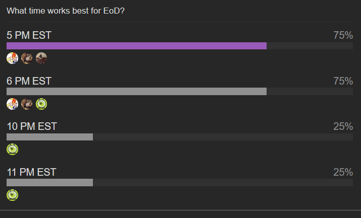 So far its a tight contest for d1 vote between me/bionic/frost so wed love another contender