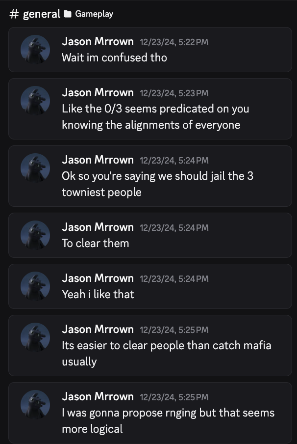 Wait carbon lets say we jail the 3 towniest people and we get 1/3