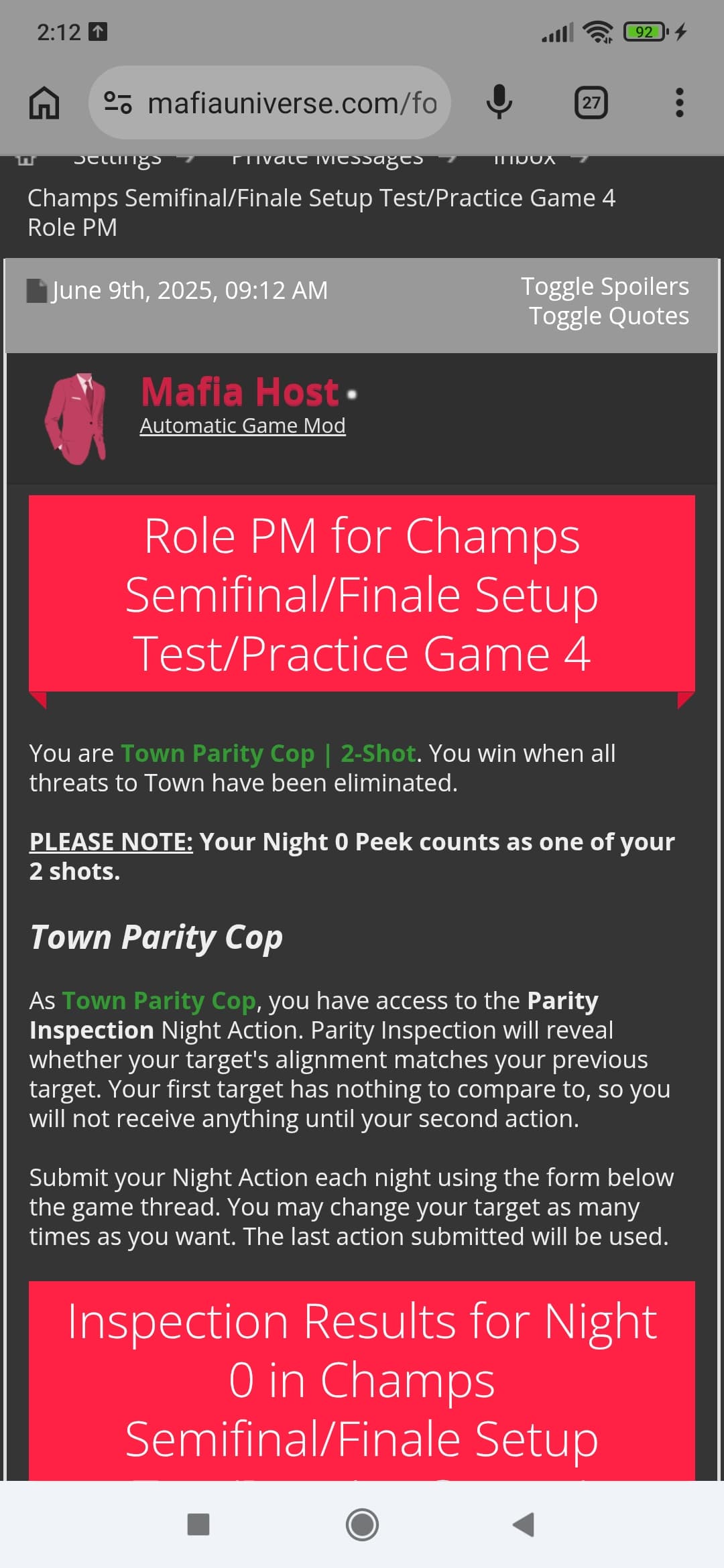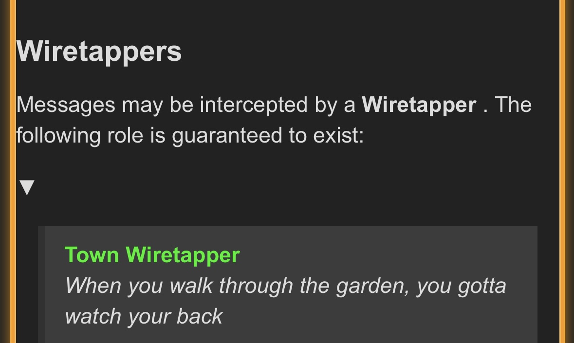 Meaning that there’d only be one Mafia role that sends texts to other players with another transmission code than of their own –a more likely scenario than me being sent two fake texts.