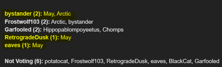 but you didn’t interact with may and blackcat in any meaningful capacity (before today) and they were your main scumreads the entire game